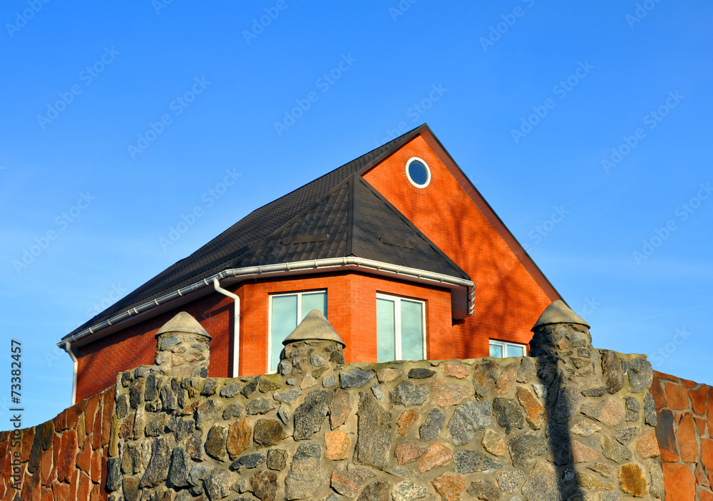 modern private house by a stone fence