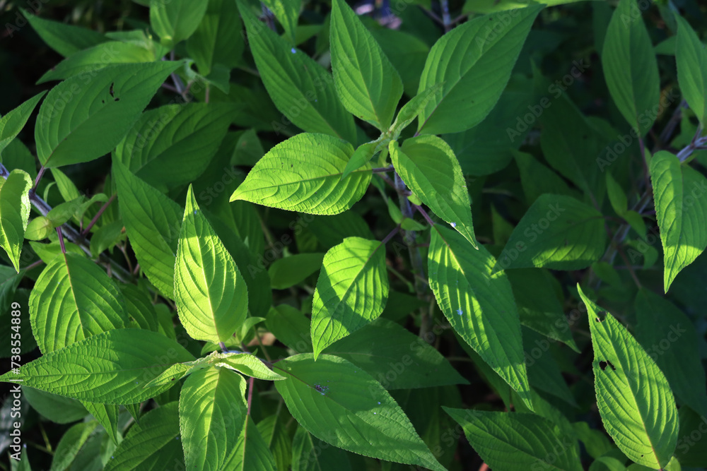 Close-up of Pineapple sage with green leaves in the garden. Salvia elegans Scarlet Pineapple
