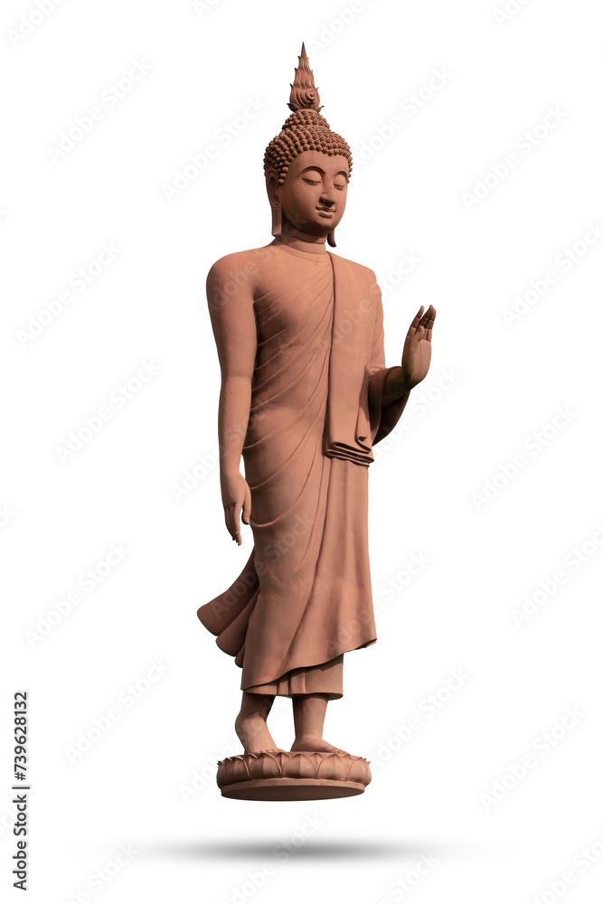 Buddha statue standing isolated on white background. Buddhism religion Concept.
