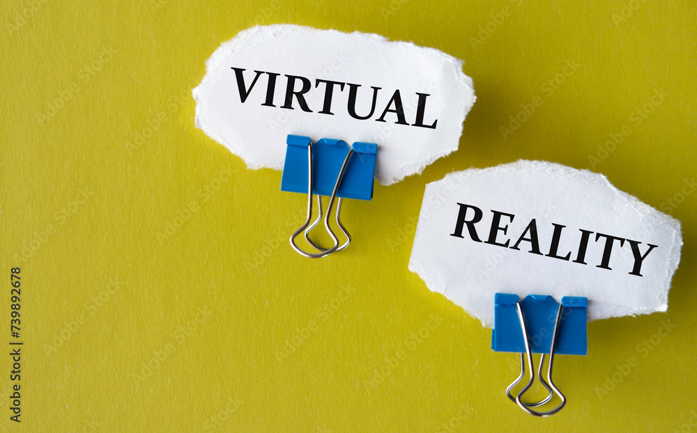 VIRTUAL REALITY - the words is printed on a white piece of paper on a yellow background