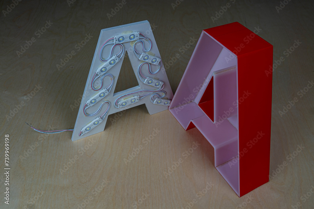The internal structure of the light letter is part of an advertising sign. Separate parts.