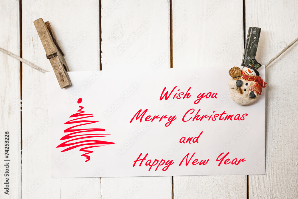 Christmas snowman clothespins holding greeting card