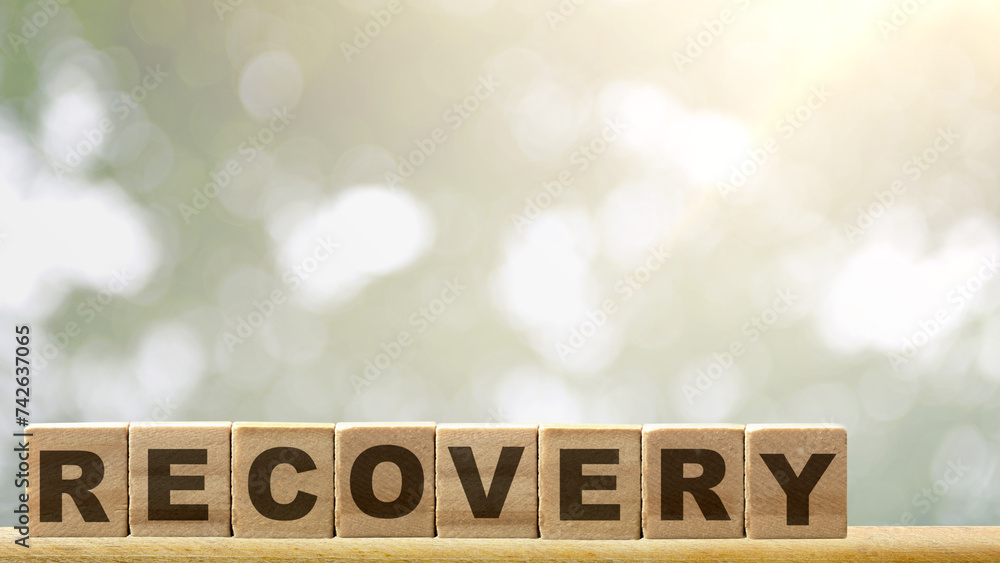 The row of wooden cubes with recovery text