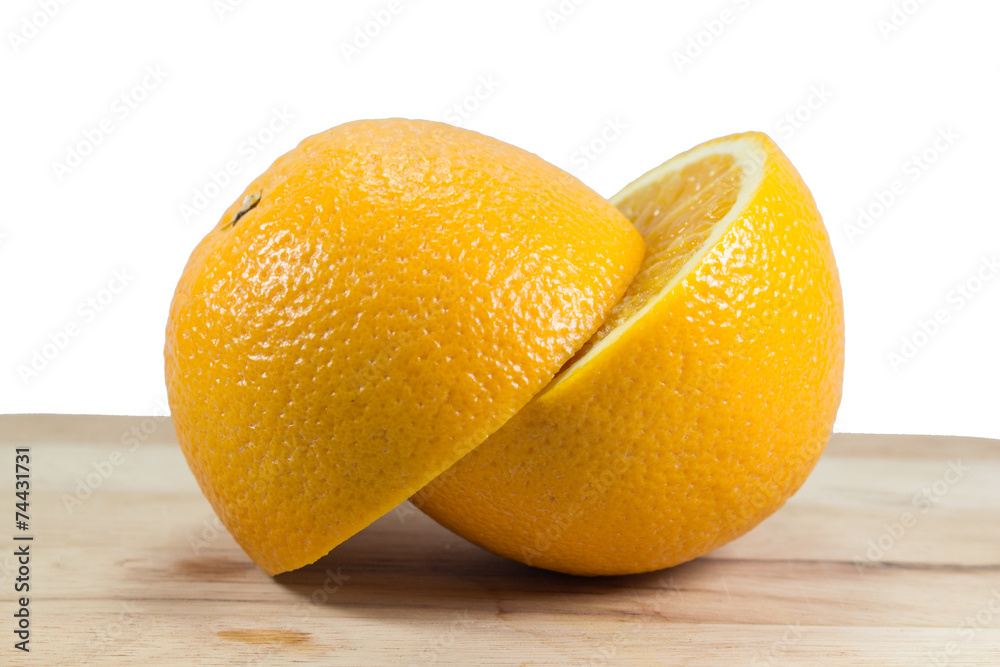 Half of orange on wooden