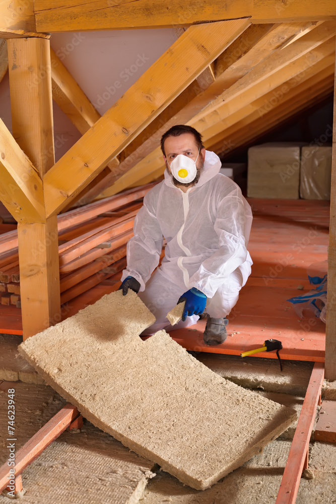 Man laying thermal insulation layer