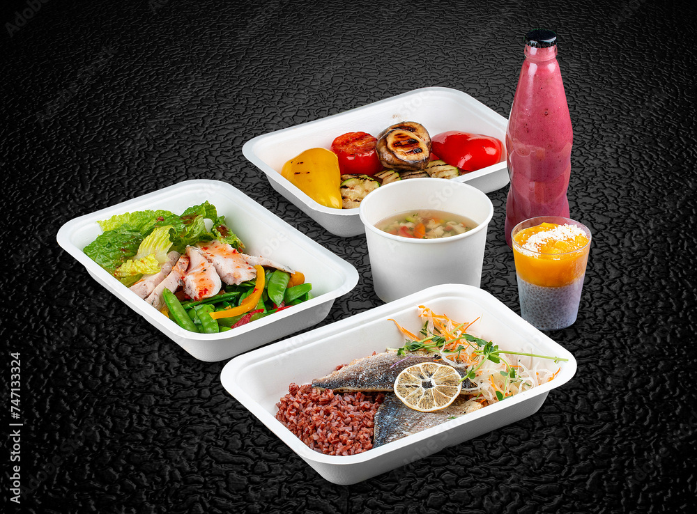 A variety of healthy and delicious meal options in eco-friendly takeaway containers.