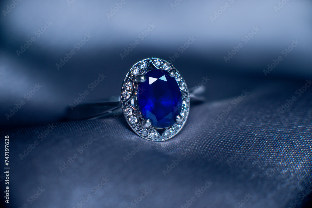 Golden ring with blue gemstone, sapphire