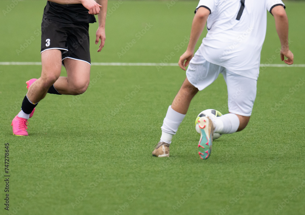 Fußballspieler auf einem Kunstrasen im zweikampf beim Fußballspielen