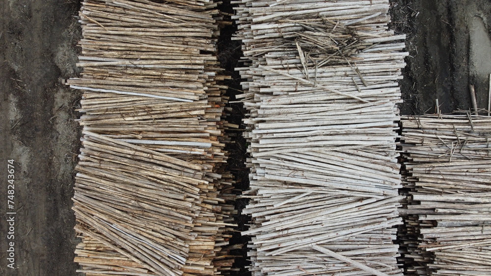 Toras de madeiras de eucalipto para a produção de papel e celulose em uma indústria em suzano, são paulo, brasil