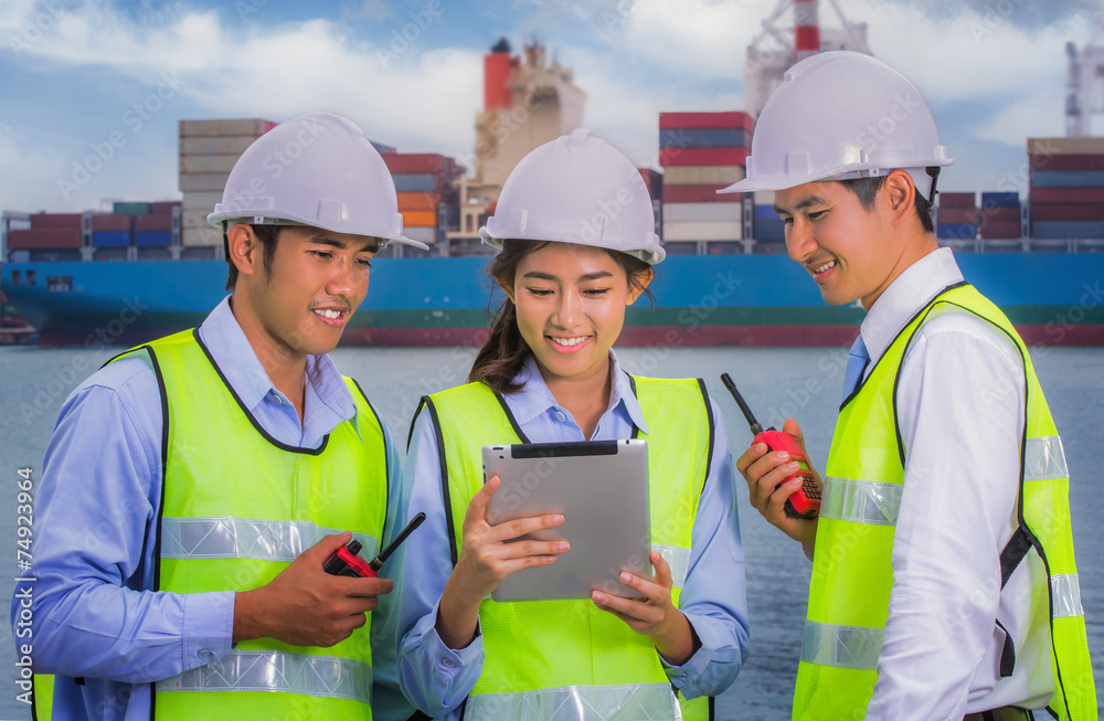 The engineer working with container Cargo freight ship