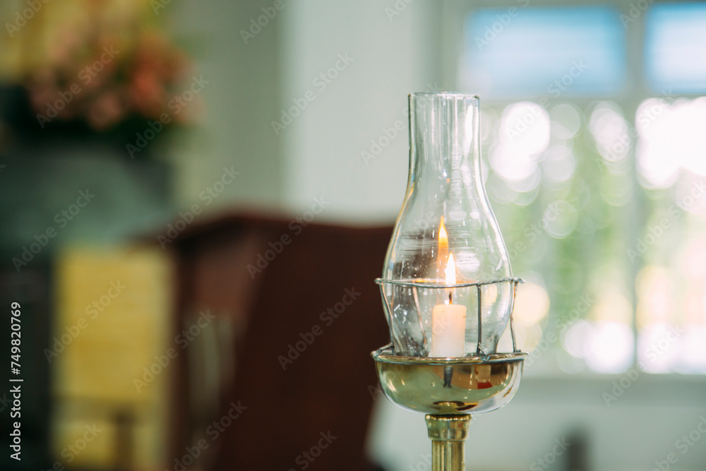 Oil Lamp lighting up and on the church, wedding place, arena or location.