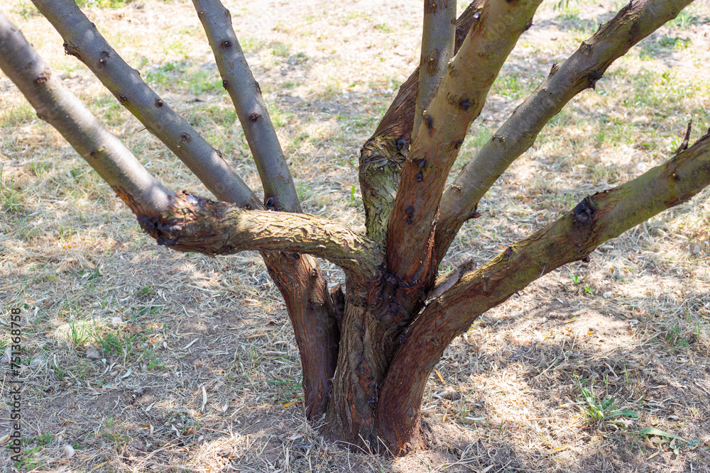 A tree trunk with branches in different directions. Forming a tree trunk for a voluminous crown