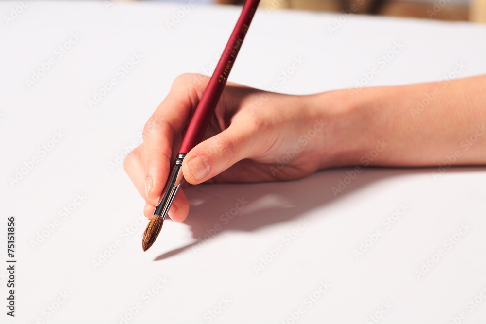 미술용품을 들고 있는 손 클로즈업