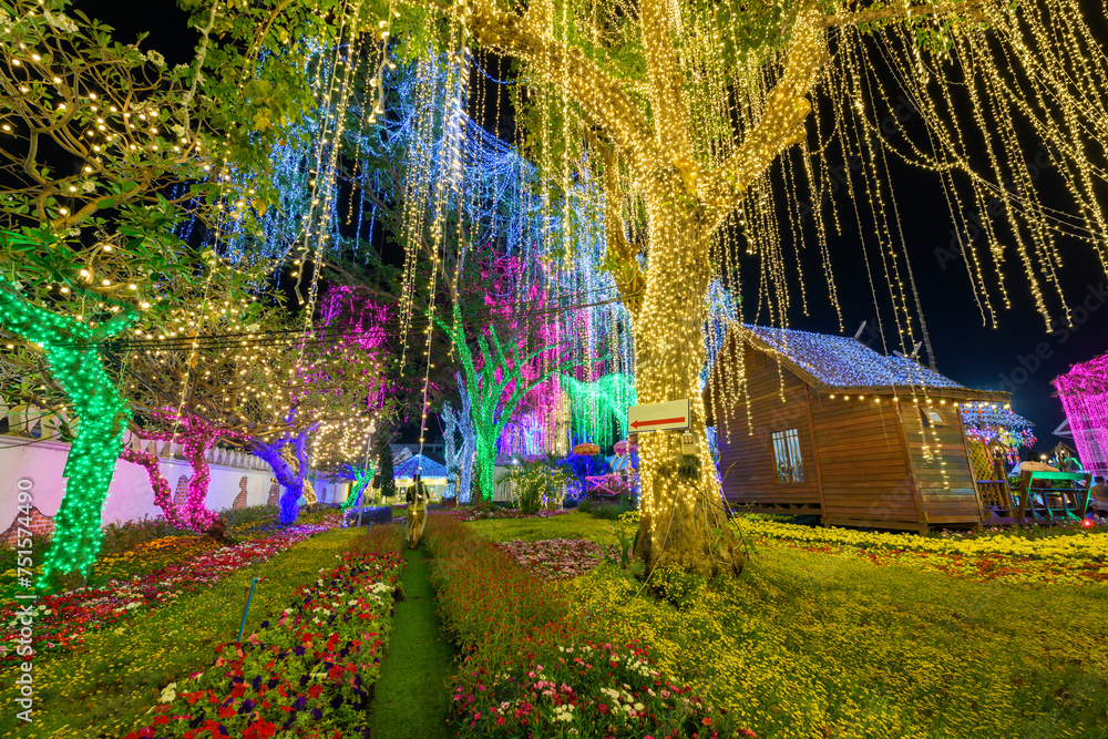 illumination in night at Rachanuson Park in lopburi , King narai festival is annual festival in Lopburi