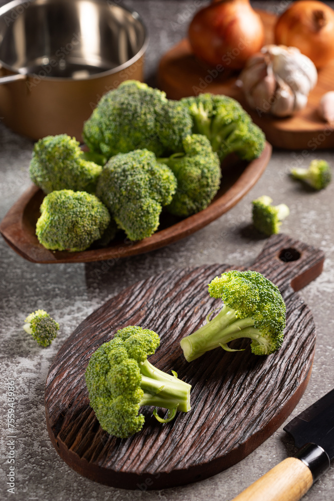 Fresh green organic broccoli on the table.