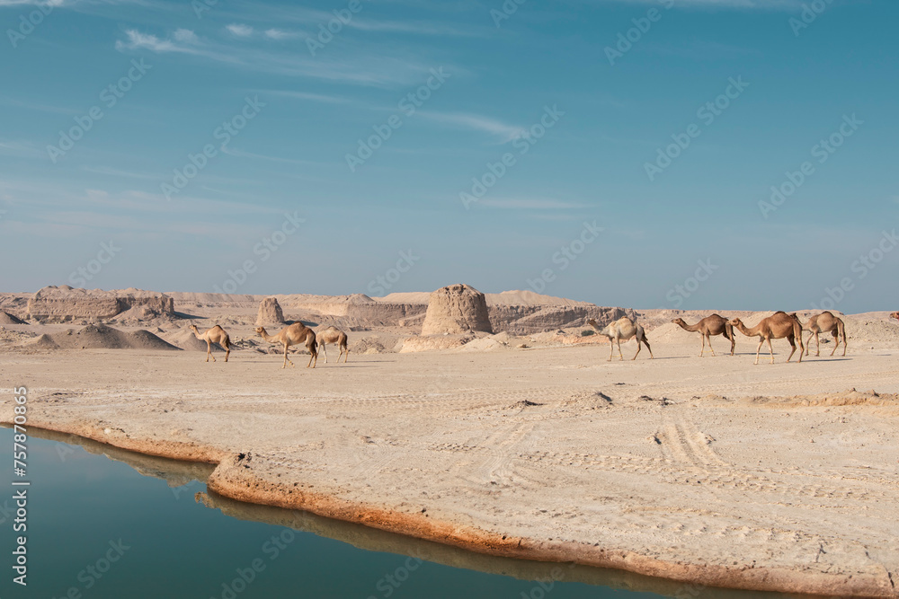 Camel in desert lake Umbab Doha Qatar