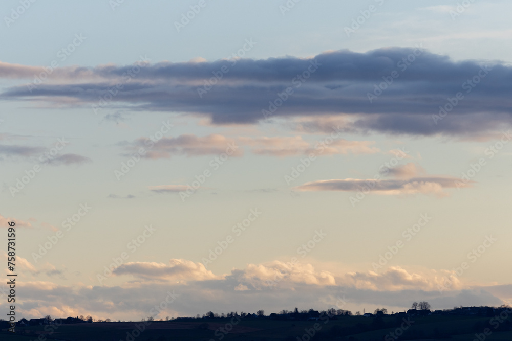 Viele Wolken am Himmel im Schaumburger Land an einem kalten Winterrabend in der Dämmerung