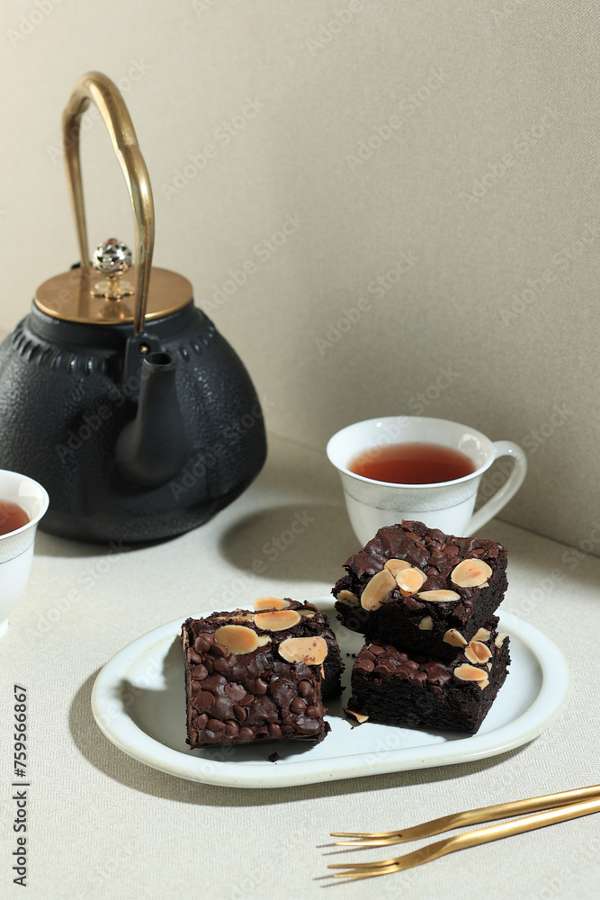Slice Fudge Brownie with Almond Flake and Chocolate Chips