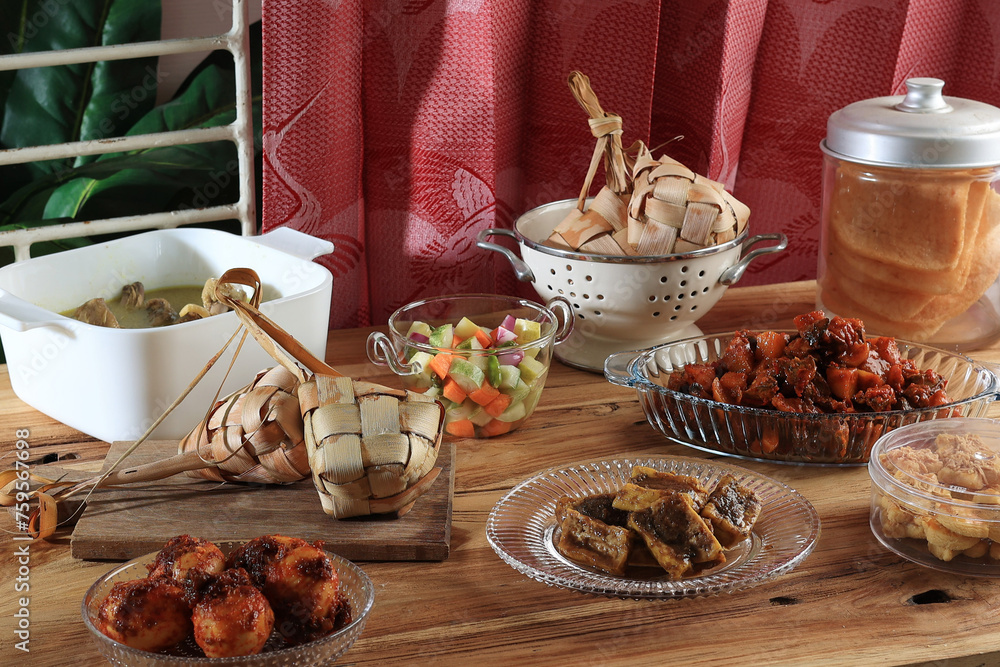 Ketupat Lebaran and Various Side Dish on the Table