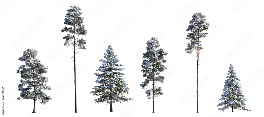 winter Pinus sylvestris Scotch pine big and picea pungens colorado spruce with snow evergreen pinaceae needled tree isolated frontal png on a transparent background premium cutout