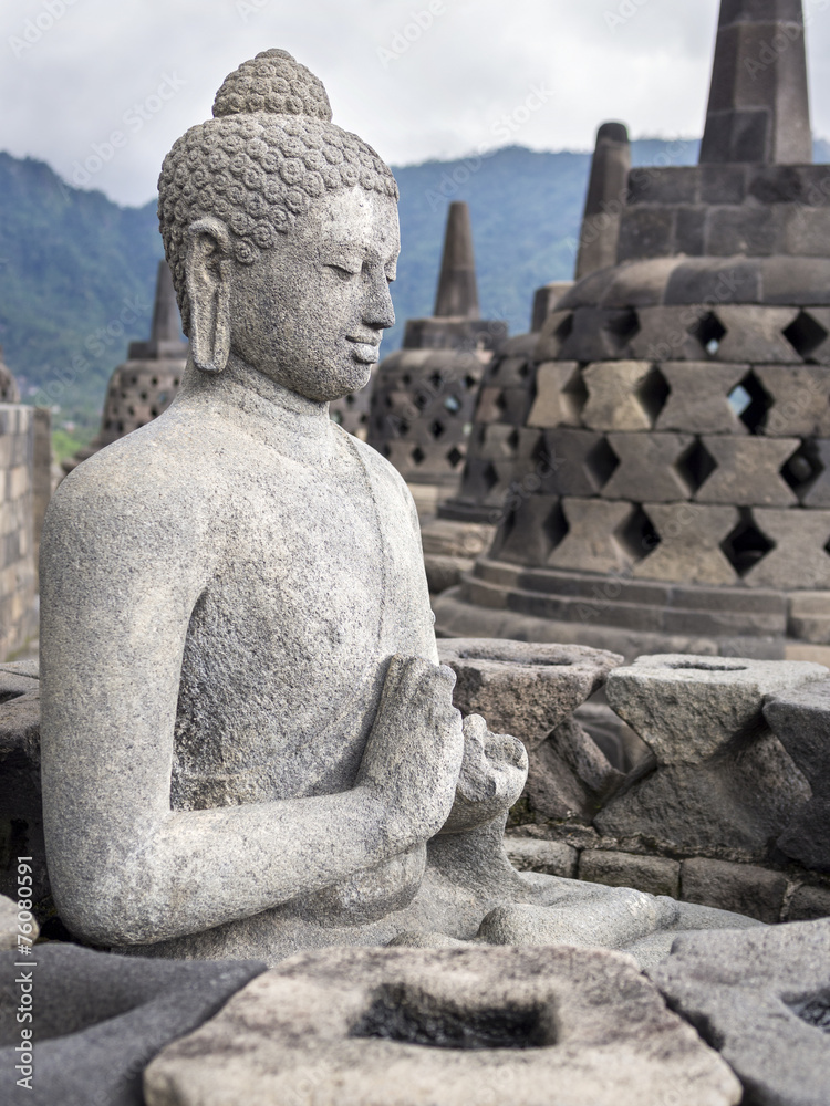 Ancient Buddha Statue at Borobudur Temple, Java, Indonesia