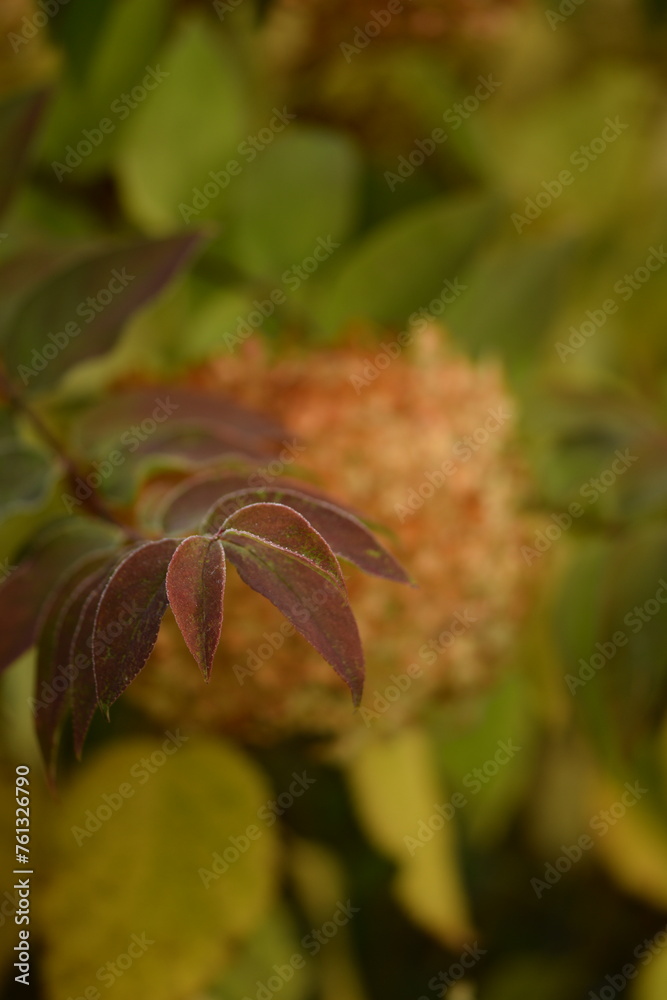 Hydrangea flowers in autumn, colored flowers on green bokeh autumn garden background, autumnal background with hydrangea flowers, bokeh, selective focus,