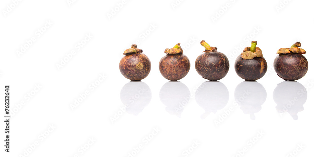 Ripe mangosteen fruit over white background
