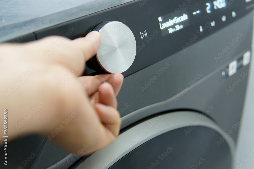 a person programming the washer dryer