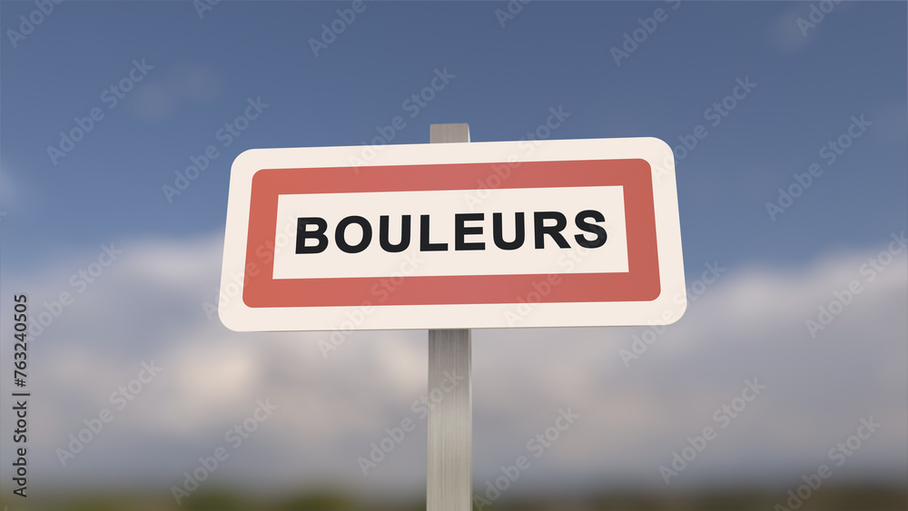 City sign of Bouleurs. Entrance of the town of Bouleurs in, Seine-et-Marne, France