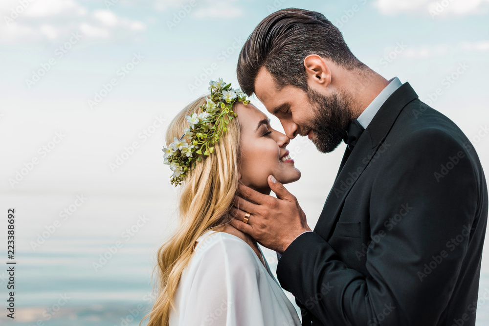 Beautiful view of white Bakka church in the Bakka village seen the Nærøyfjord fjord