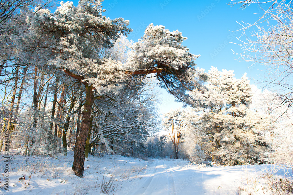 Beautiful winter landscape with snow covered trees - white world