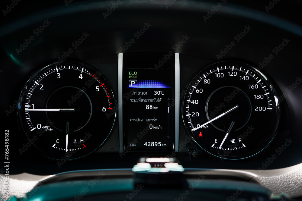 car​ instrument panel, car​ speed motor of​ night, car​ dashboard​ modern​ automobile control​illuminated panel​ speed display.