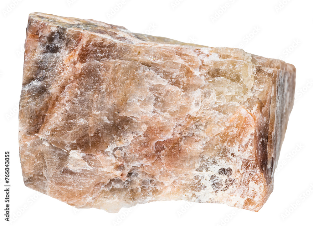 close up of sample of natural stone from geological collection - raw nepheline mineral isolated on white background from Kurochkin Log deposit, Southern Urals