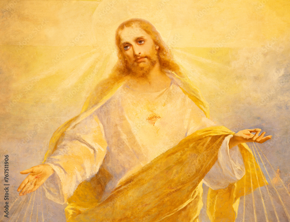 MILAN, ITALY - MARCH 4, 2024: The detail of painting of Heart of Jesus in the church Chiesa di San Agostino by Ambrogio Colombo (1926).