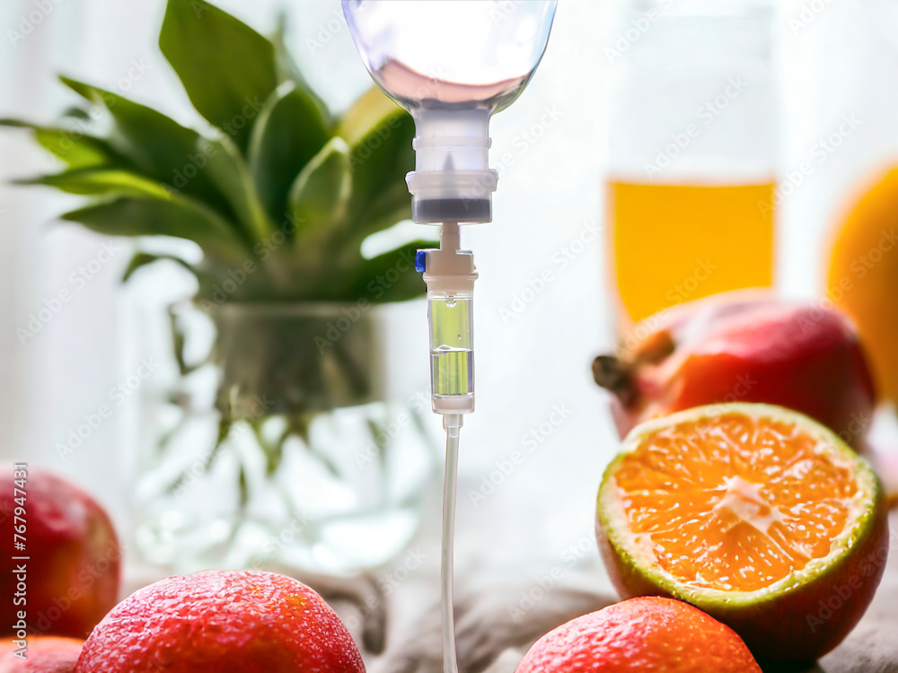 Vitamin iv drip natural green orangs therapy treatments concept.