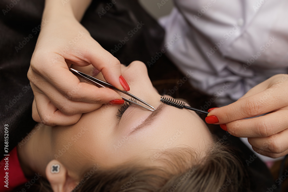 Removal of excess hairs and correction of eyebrows before the permanent makeup procedure. Second PMU procedure in a month of permanent eyebrow makeup. Permanent makeup correction.