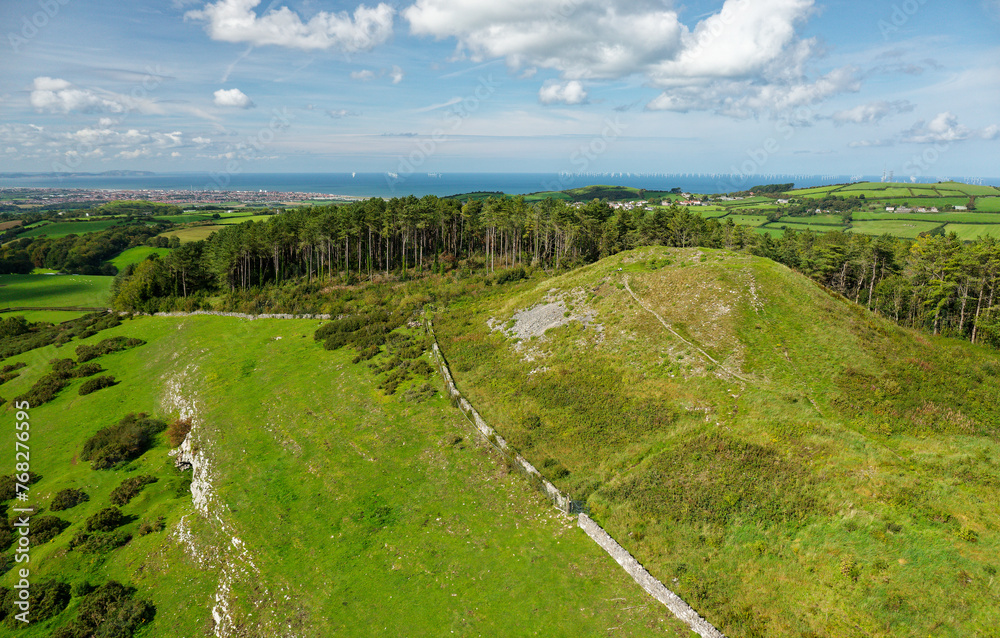 Gop Hill Cairn, Trelawnyd, N. Wales. Second largest manmade prehistoric mound in Britain after Silbury Hill. N.W. to Irish Sea coast and Isle of Man