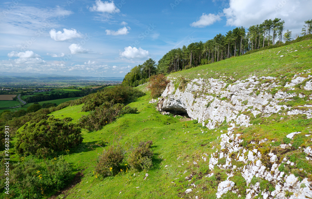 Gop Hill, near Trelawnyd, north Wales. Limestone caves below south flank of Gop Hill Cairn. Site of Neolithic through Bronze Age burials