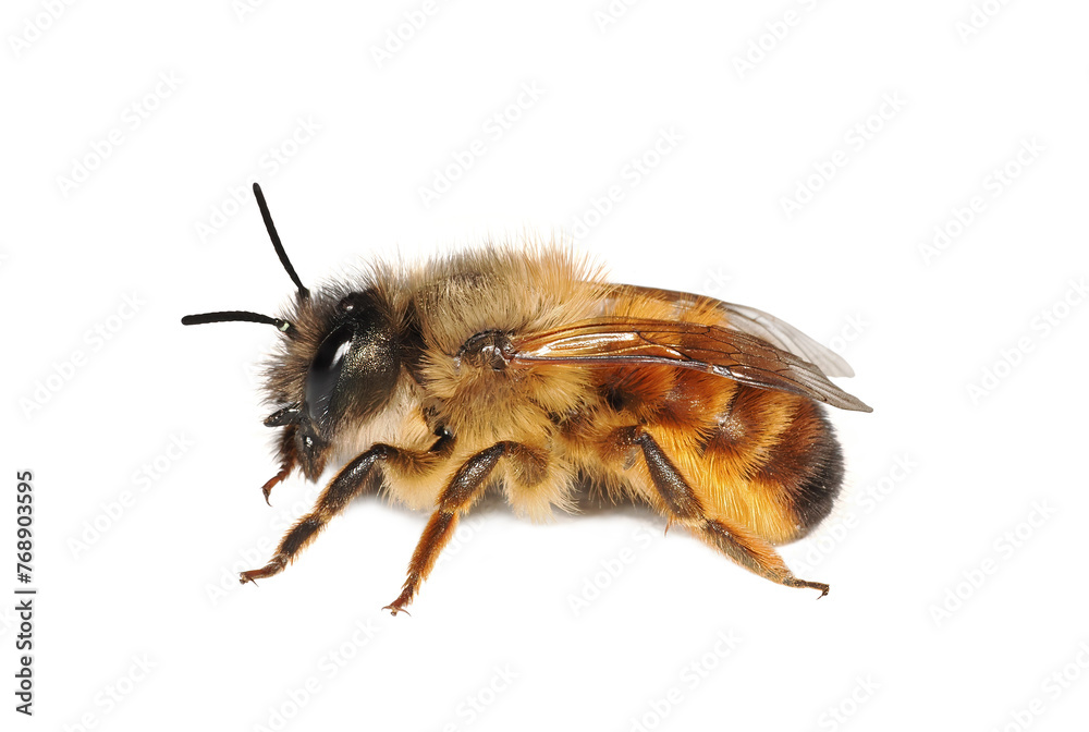 Red Mason Bee (Osmia bicornis), wild bee isolated on white background