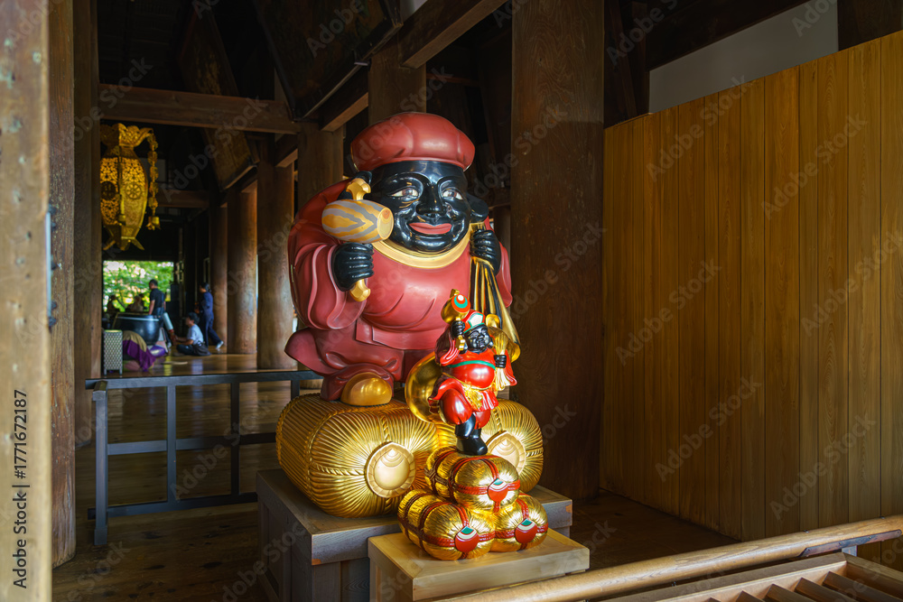 Dramatic image of ruins in front of the old city Jerusalem gates with weathered stone columns in the foreground.
