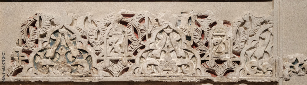 Trending Arabic Bas-Relief Panel Design with Geometric Floral Elements in Stone Carvings of Historic Significance