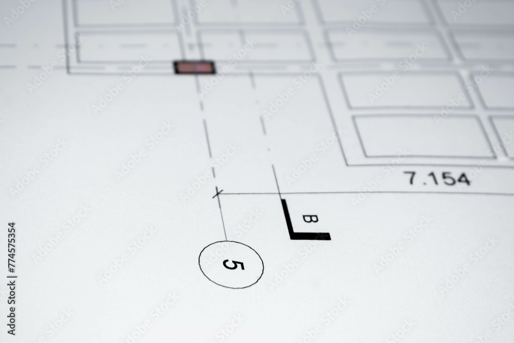 Detail of symbols in architectural and constructive plan. Axes and dimensions
