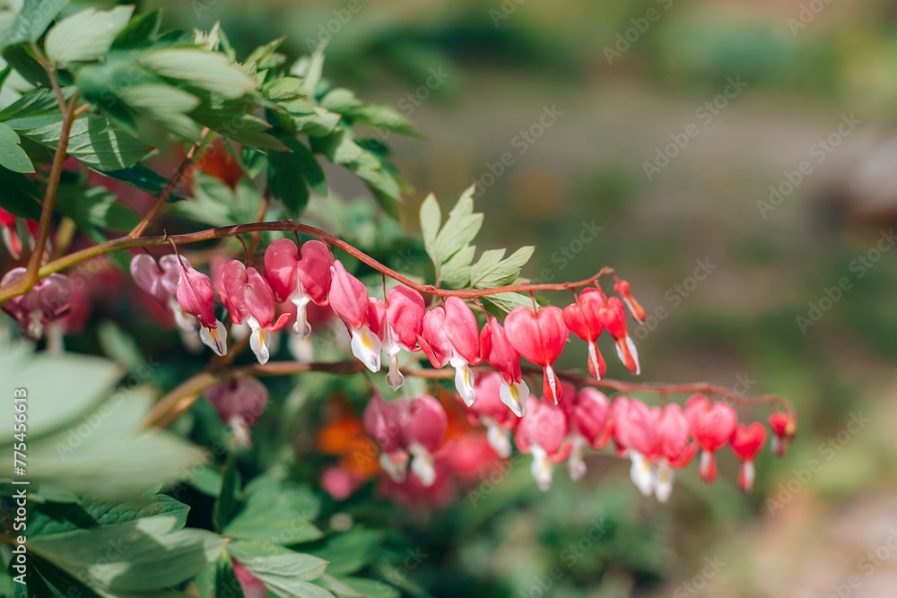 Lamprocapnos spectabilis Dicentra spectabilis . Pink Heart Shaped flower. Closeup