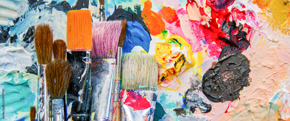 Fragment of multicolored texture painting. Abstract art background. oil on canvas.