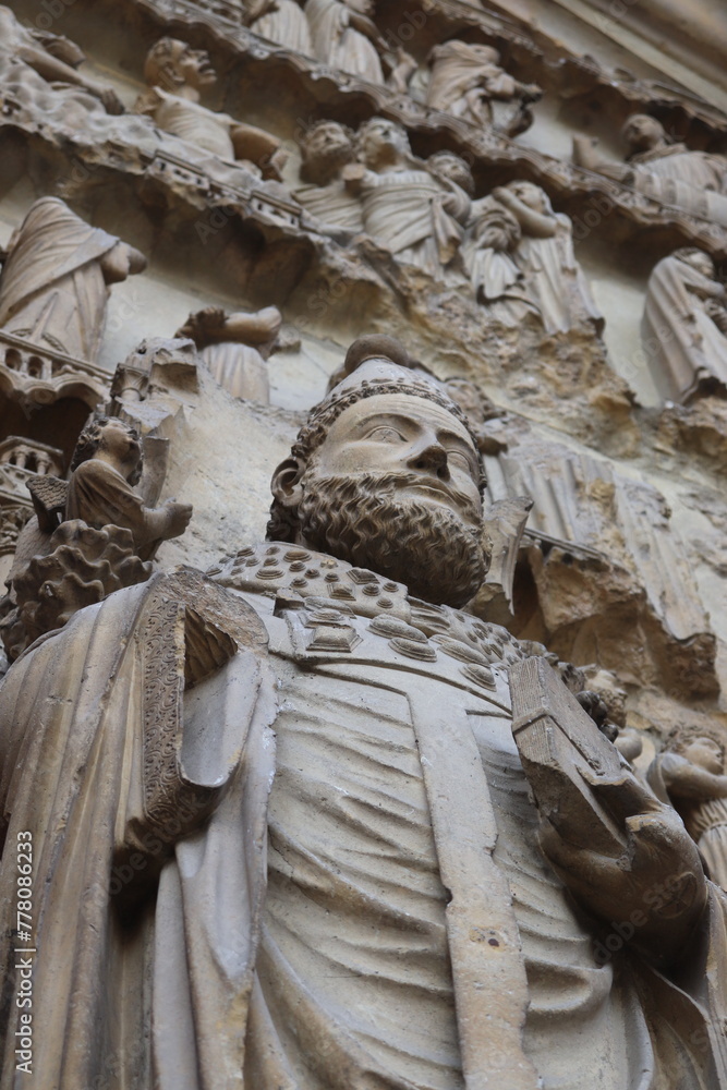 Portale Figuren und Schmuck an der gotischen Kathedrale von Reims Frankreich - Musterbeispiel einer Kirche der Gotik