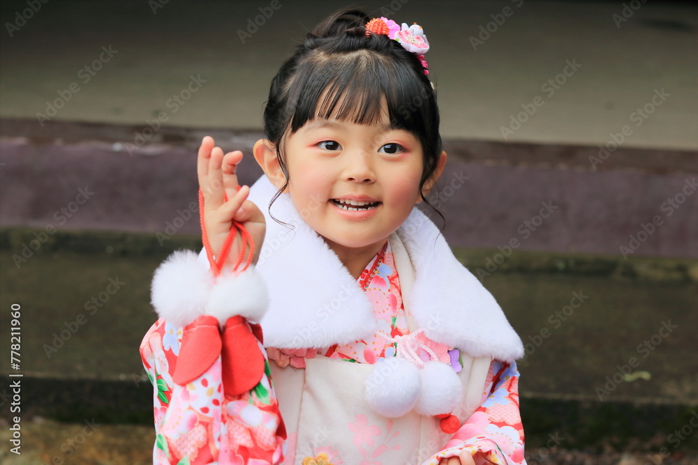 七五三参りをしている子供