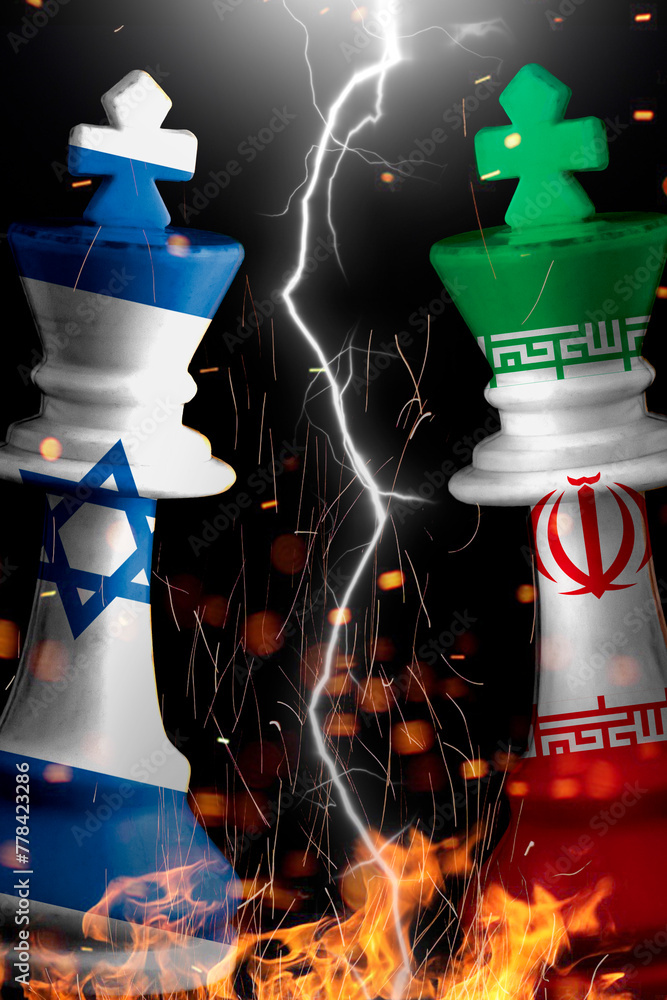 Iran and israel flags paint over on chess king. 3D illustration iran vs israel.