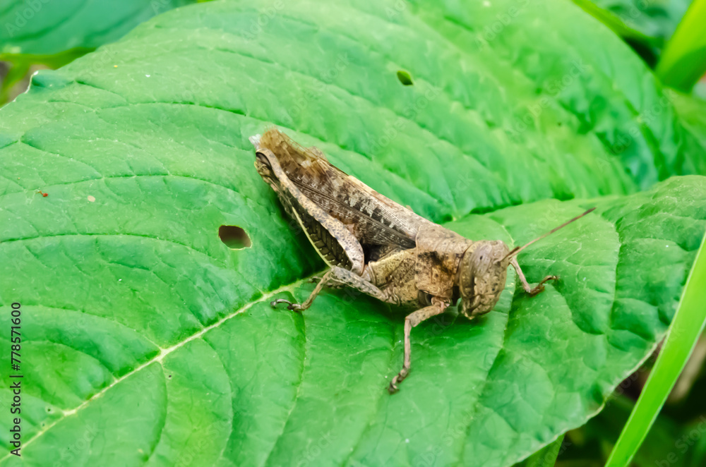 Grasshopper On Callaloo Leaf
