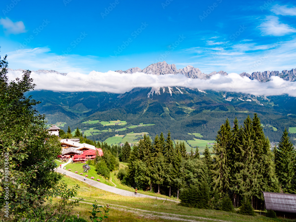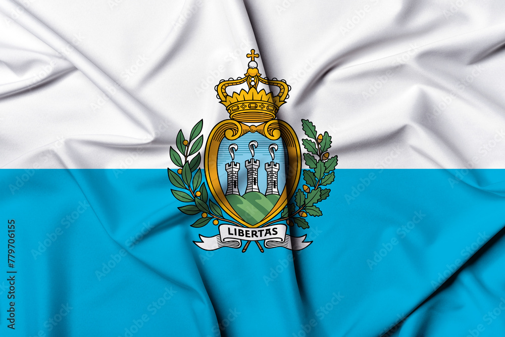 Beautifully waving and striped San Marino flag, flag background texture with vibrant colors and fabric background