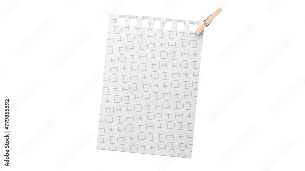 A Piece of Paper with a Clothespin from a Notebook. PNG Design Element.